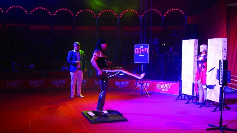 Квіт102018 Найбільша кількість ножів, кинутих ногами в дерев’яний щит з людською мішенню за 60 секунд