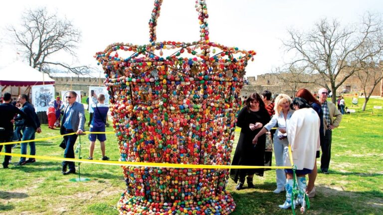 Пасхальний кошик, створений з найбільшої кількості крашанок