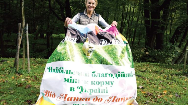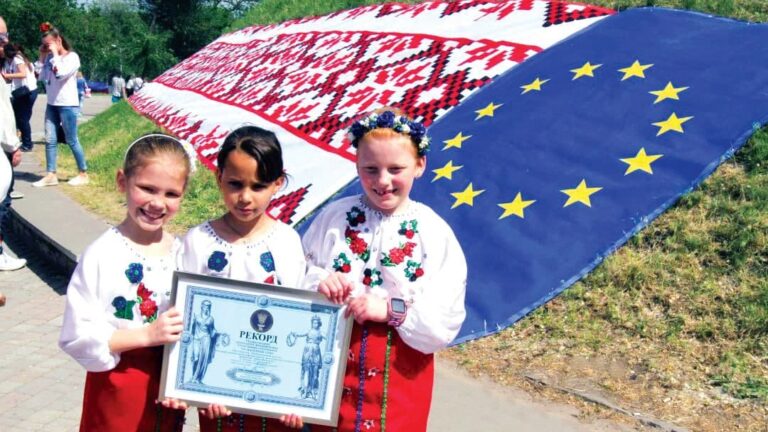 Найбільший орнамент вишиванки, сплетений стрічками на банерній сітці