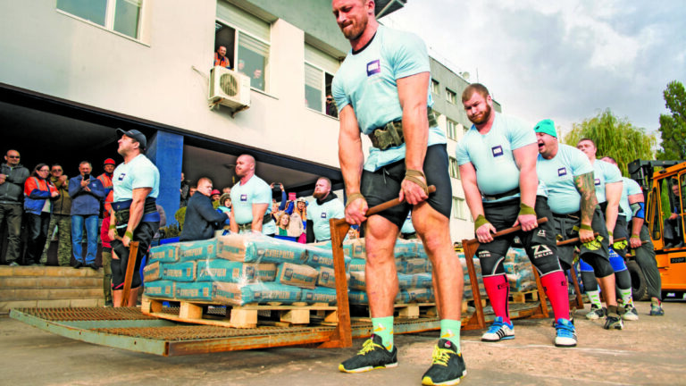 Максимальна кількість підйомів цементу в мішках на платформі командою з десяти стронгменів