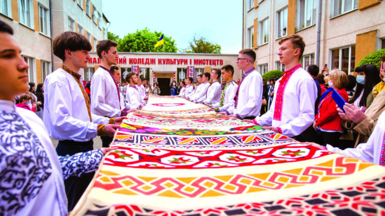 Трав202021 Найдовший рушник, виготовлений технікою «фелтинг» (валяння вовною), з використанням орнаментованої символіки різних етнографічних груп України