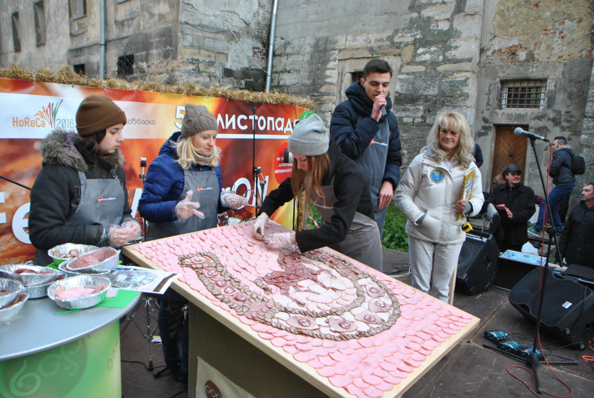 Nov42016OrganisersRodynna KovbaskaCountry: UkraineWhere: LvivYear: 2016Result120 х 84 cmNational recordThe largest picture made from sausage slices measures 120 by 84 cm and was achieved by Halyna Dudar from Lviv on 4 November 2016. To make such a picture 10 kg of sausage was used. Share this Share on XShare on X Share on FacebookShare on Facebook Share on LinkedInShare on LinkedIn Share on WhatsAppShare on WhatsAppSimilar postsFastest speed on a tandem motorcycle11/10/2021Largest wafer bar in chokolate icing by weight19/04/2021Most weight lifted by deadlift in one minute17/04/2021Most holes drilled in a goose egg17/04/2021