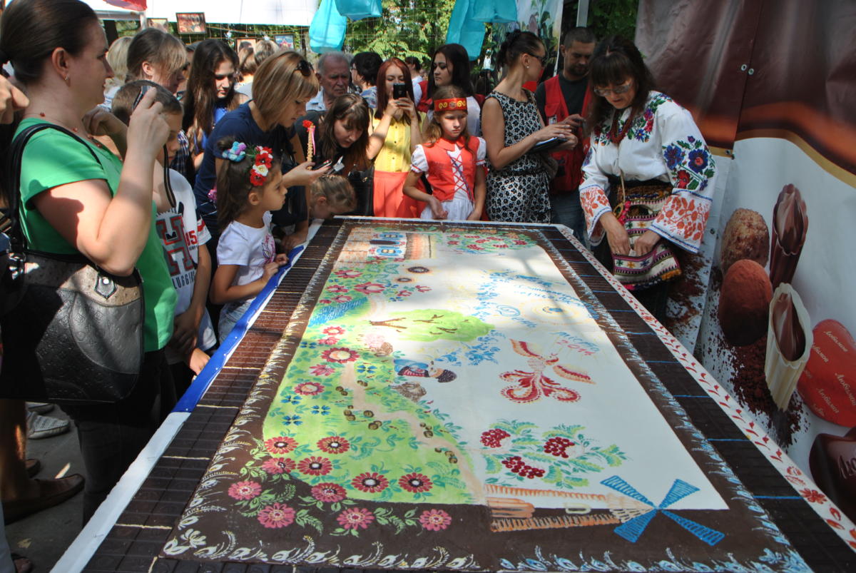 Chocoholics would have lost their patience if they knew that the Kyrylenkos spent more than a week to prepare a decoration for this giant chocolate bar, which measured 2.47 x 1.1 m.