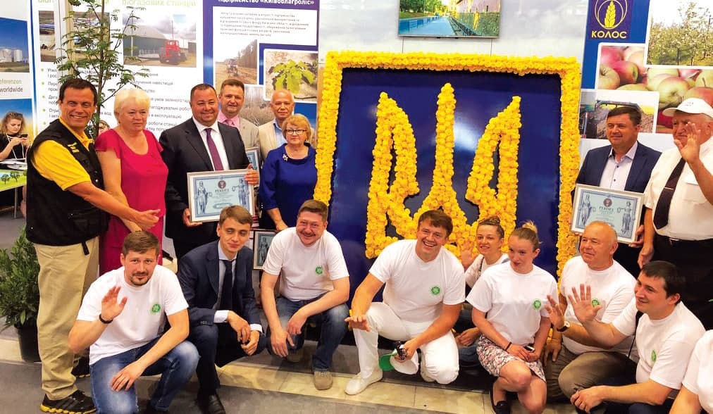 На міжнародній виставці «Агро-2018» учасники з Київської області створили державний герб із 1840 живих троянд. 8 дівчат збирали герб усю ніч, а впродовж дня кожні 20 хвилин квіти бризкали водою, щоб вони не зів’яли. Розміри герба сягнули 1,67 х 1,05 метра, конструкції — 2,10 х 1,90 метра. Організатор рекорду — Департамент агропромислового розвитку Київської обласної державної адміністрації.