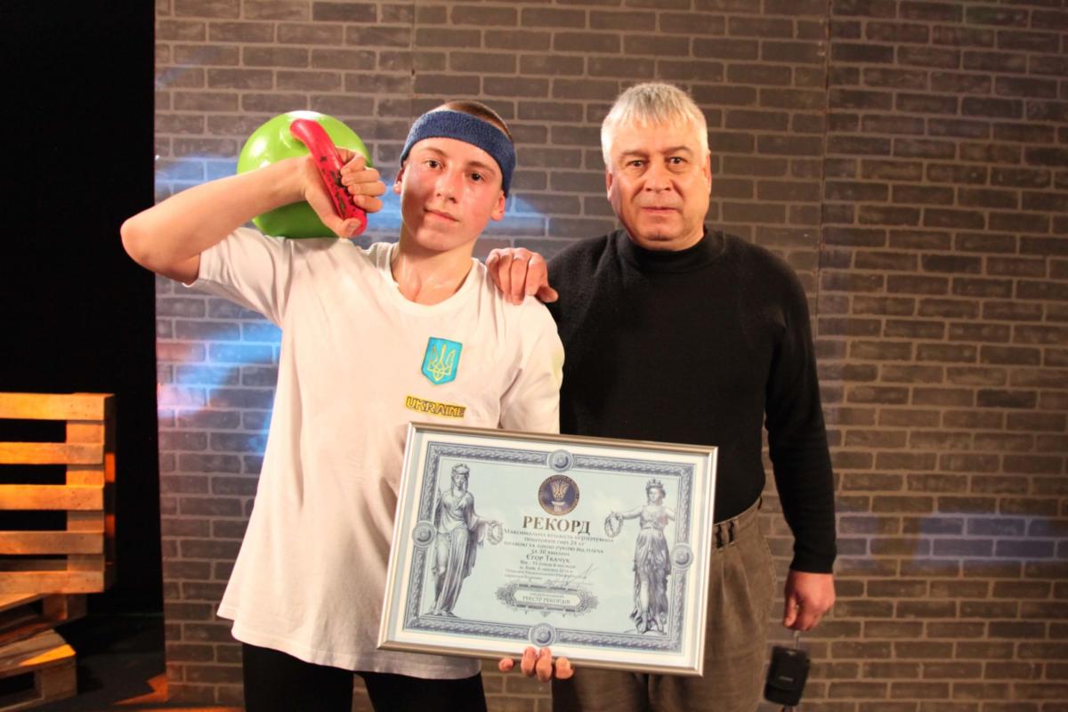 Школяр із Мелітополя Єгор Ткачук своє захоплення гирьовим спортом перетворив на видовище і в різний час став автором кількох національних рекордів у різних номінаціях. Глядачі не нудьгують, поки спортсмен повторює одну і ту ж вправу навіть 30 хвилин поспіль. Легко, наприклад, сказати – Єгор у віці 15 років і 6 місяців за півгодини підняв 24-кілограмову гирю 503 рази. А уявіть, що сумарно це складає понад 12 тонн – стільки ж важив найбільший відомий історії африканський слон.