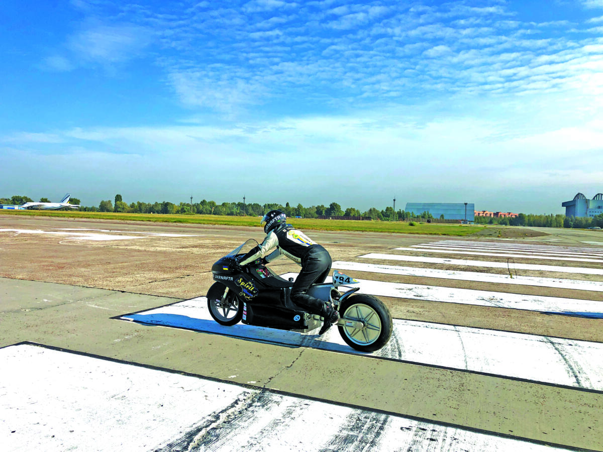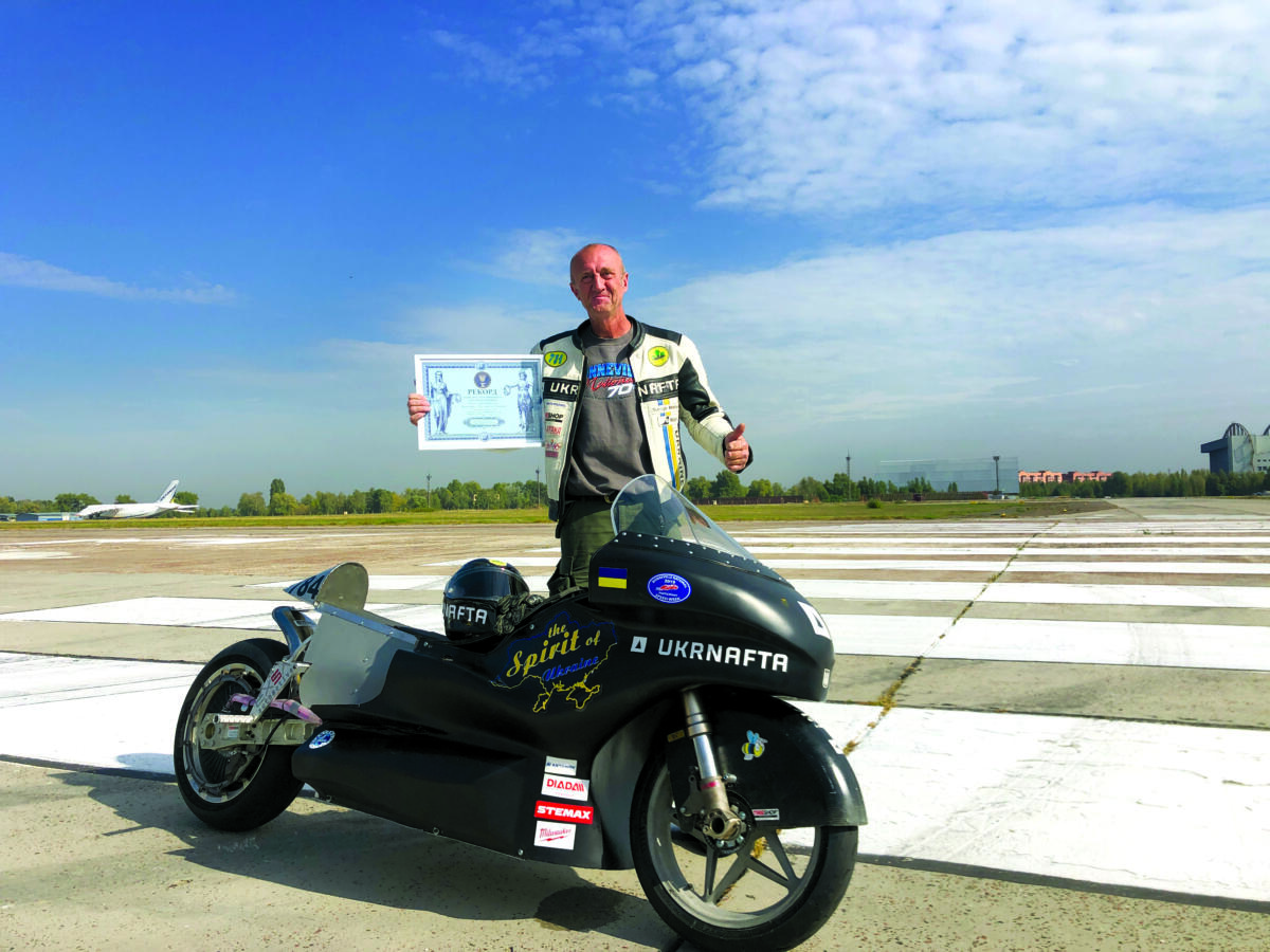 Хто боїться швидкості та кого не заводить звук двигуна, хай проходять повз. На злітно-посадковій смузі аеродрому «Антонов-2», що в Гостомелі Київської області, був установлений рекорд максимальної швидкості електромотоцикла. Його встановив чемпіон України з кільцевих перегонів, президент Київського міського автомотоклубу, майстер спорту та відомий гонщик Сергій Малик. Приємно, що рекорд Сергій установив на вітчизняному мотоциклі The Spirit of Ukraine. На ньому він розігнався до швидкості 201 км/год.