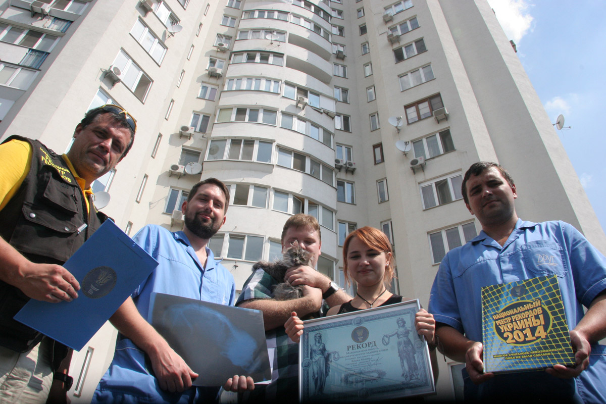 Пролетівши 68,3 м, перелякана Мілінда щосили вдарилася об асфальт і… після такого страшного падіння на диво залишилася жива! Щоправда, таки зламала лапку і ребро. У ветеринарній клініці каскадерка перенесла кілька операцій і місяць пересувалася зі спицею в лапці. Тепер весела Мілінда, якій виповнився 1 рік і 2 місяці, знову нагадує м’ячик-стрибунець. А щоб уникнути повторення рекорду, господар кішки Дмитро встановив на вікнах сітки.