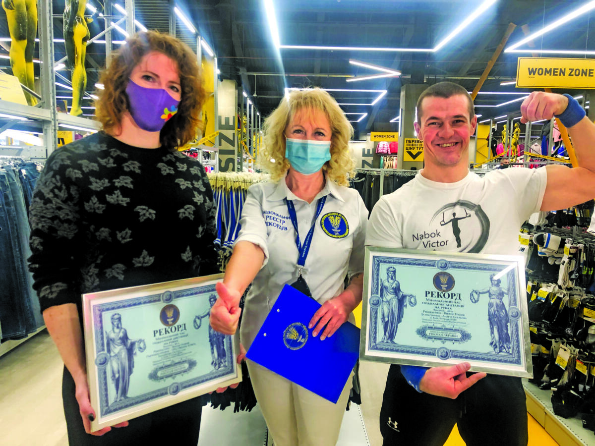Рекордсмен Книги Рекордів Гіннеса Віктор Набок встановив новий рекорд України, здійснивши швидкісний забіг на руках. Дистанцію 60 метрів він подолав за 41,18 секунди. Не дивлячись на можливі травми, атлет відмовився від використання рукавиць для захисту рук. Партнер — ТРЦ DREAM TOWN та InterSport Outlet city. Рекорд відбувся за підтримки Андрія Кісельова.