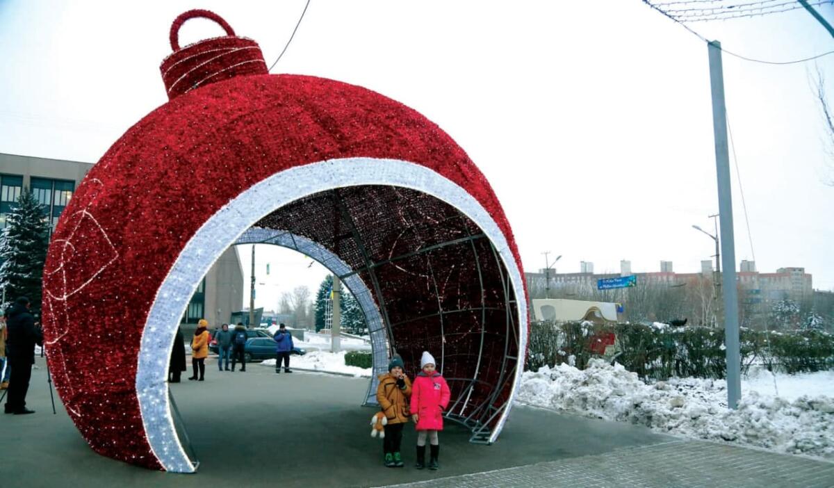 У Кривому Розі не тільки найбільший квітковий годинник, найвищий у Європі пам’ятник князю Володимиру, а й найбільша новорічна іграшка. «Ооооось такої величини», — можуть показувати малюки і це буде чистісінькою правдою. До Дня Святого Миколая в Парку героїв спорудили ялинкову іграшку величезних розмірів. Висота новорічної прикраси — 598 сантиметрів, у діаметрі 651 сантиметр. Усередині ялинкової кулі — арка, в якій із задоволенням роблять селфі і діти, і дорослі. Організатор рекорду — ТОВ «Гранд Боливар».