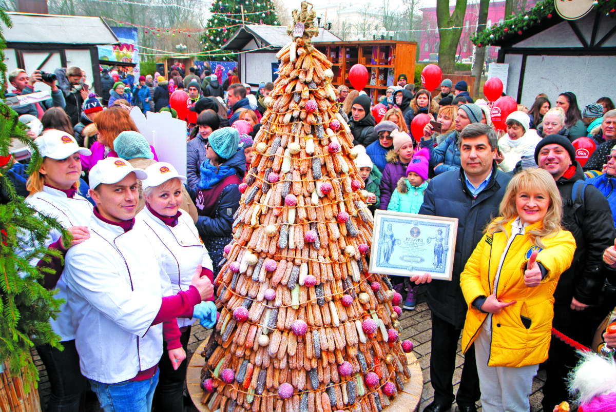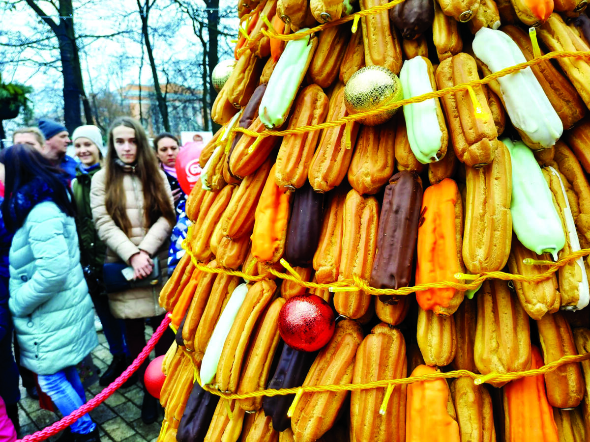 КиЇвський парк Шевченка славний передусім своїми каштанами, а от з ялинками якось не склалося… Аж ось у грудні 2019 року в парку врешті з’явилася ялинка — і не якесь там дерево з голками, а рекордний солодкий символ Нового року, заввишки 2,7 м, складений з 1500 тістечок-еклерів виробництва компанії «Київський БКК». Щоправда, еклери з ялинки не можна було навіть понадкушувати, бо їх обробили спеціальним розчином, щоб не розмокали під снігом. Та все одно кожен з присутніх отримав у подарунок найсмачніші у світі еклерчики. Щастя є!