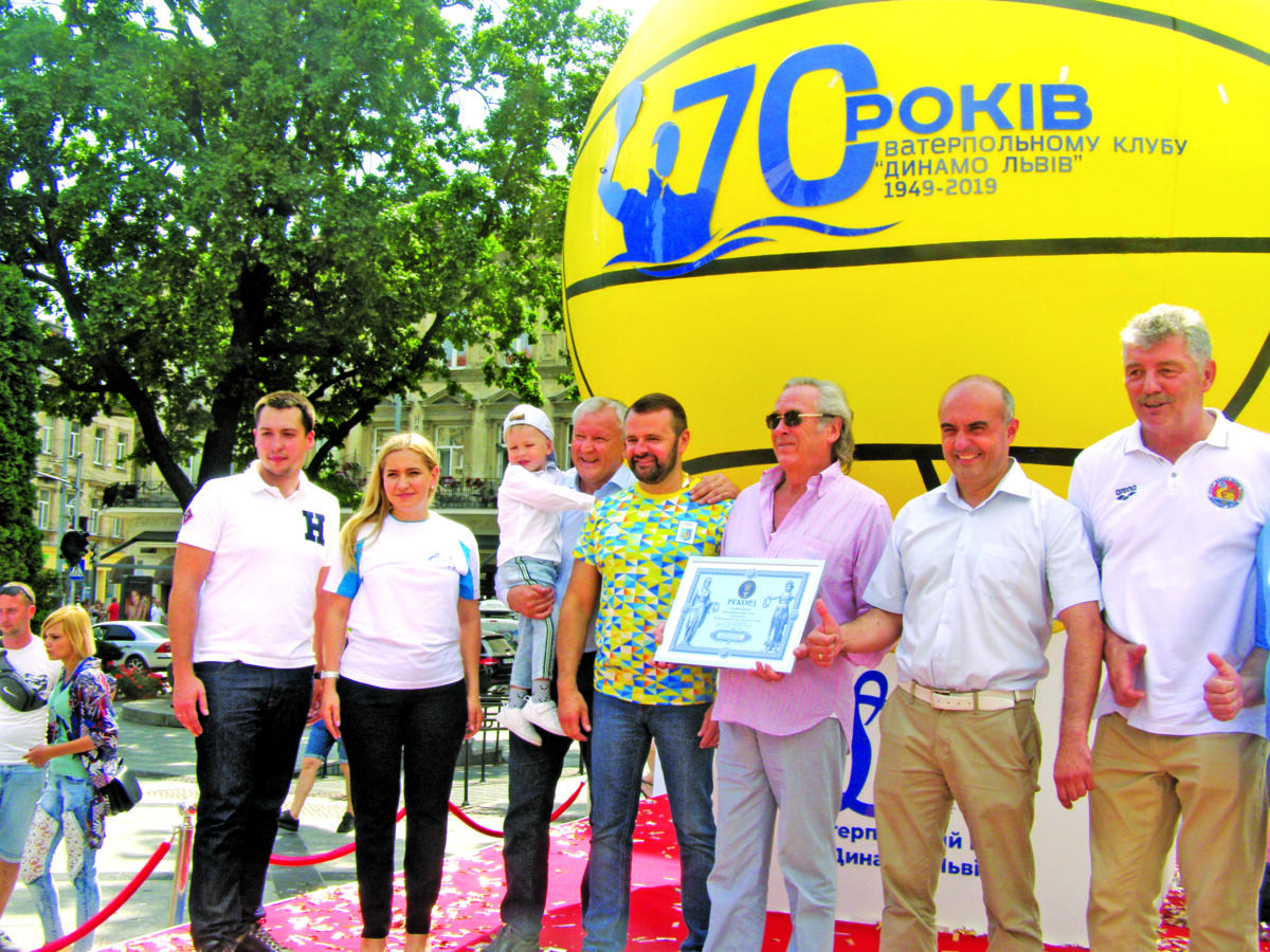 Достатньо було відправити людину до пам’ятника Тарасу Шевченку у Львові, щоб вона більше не питала, що таке водне поло і чим у нього грають. Бо саме там було встановлено найбільший ватерпольний м’яч. Його діаметр — 3,5 метра. Саме таким, але, звичайно, меншим м’ячем грають гравці ватерпольного клубу «Динамо Львів». І цей трьохметровий м’яч як арт-об’єкт присвятили 70-річчю легендарного ВК «Динамо Львів».