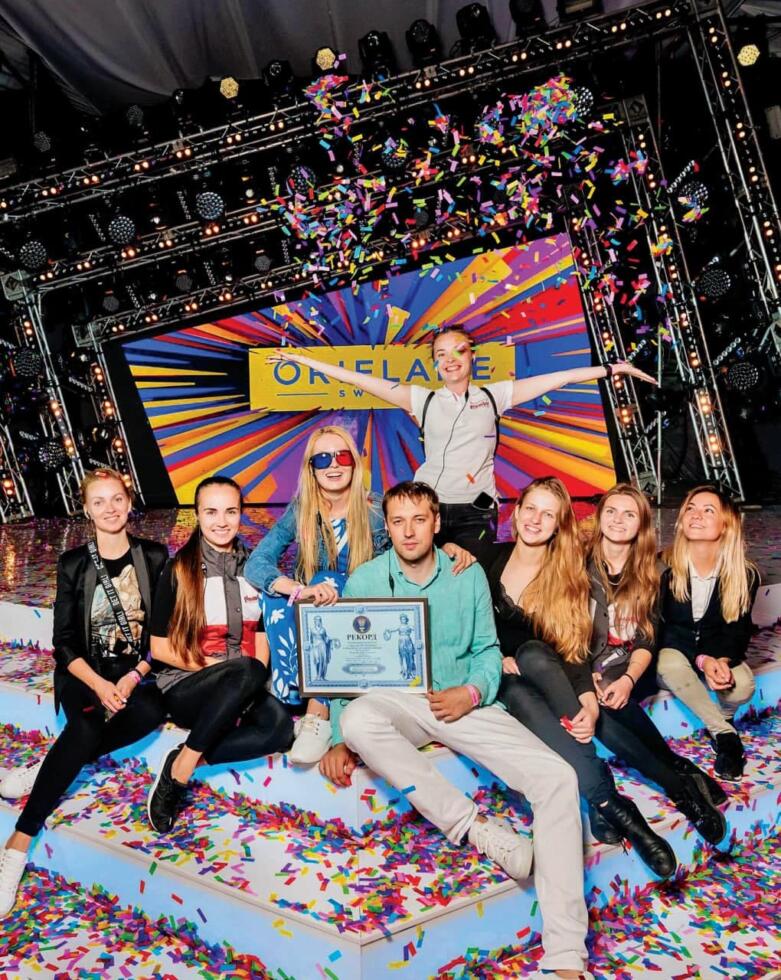 Вер152018ОрганізаторPlombir event companyКраїна: УкраїнаДе: м. ОдесаРік: 2018Результат815 гостейКомпанія Plombir event company перетворила звичайний корпоратив в Одесі на найбільший глядацький зал 3D-проекції. Її розгорнули на стелі. А червоно-сині анагліфні окуляри одночасно вдягнули 815 гостей бенкету. Поділитися Share on XShare on X Share on FacebookShare on Facebook Share on LinkedInShare on LinkedIn Share on WhatsAppShare on WhatsAppСхожі записиНайбільша швидкість FPV-дрону зенітного типу30/11/2025Автор і співавтор найбільшої кількості книг з медицини25/11/2025Найбільша кількість переглядів навчального відео з масажу на платформах Instagtam i TikTok20/02/2025Лікар з найбільшою кількістю вищих освіт14/02/2025
