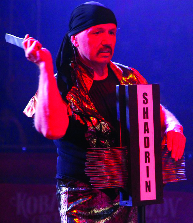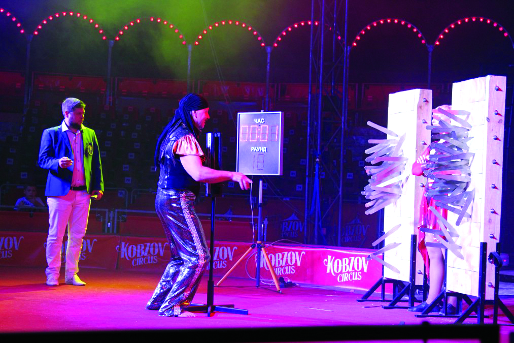 За підтримки цирку «Кобзов» досвідчений трюкач Сергій Шадрін встановив одразу два рекорди. Спершу він протягом однієї хвилини кидав ножі правою ногою в дерев’яний щит поруч з асистенткою, а це не хто-небудь, а його власна дружина Наталя. Результат — 13 ножів. Потім на тих самих умовах кидав ножі вже почергово правою і лівою рукою — 91 ніж, і жоден не зачепив Наталю.