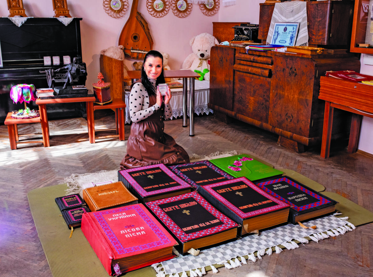 Неймовірну роботу представила майстриня з Рівного Олена Медведєва — ручну ниткографію 24 книг! Загалом це 540 542 знаки та літери, вишиті голкою у рукотворних книгах. До речі, майстриня зазначає, що жодного хрестика в ілюстраціях та орнаментах експерти до уваги не брали, рахували лише літери і знаки в текстовій частині. Пів мільйона вишитих знаків та літер нам цілком достатньо, щоб захоплюватися терпінням майстрині. До речі, це — другий рекорд мисткині Олени Медведєвої.