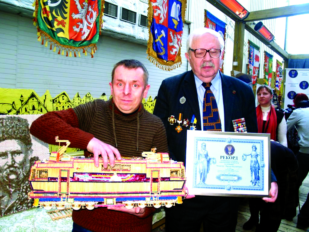 Найбільша модель локомотива та вагона із сірників. Майстер — Віктор Шуляренко. Довжина становить майже 12 метрів (локомотив, 11 вагонів, а також рейки і світлофори).