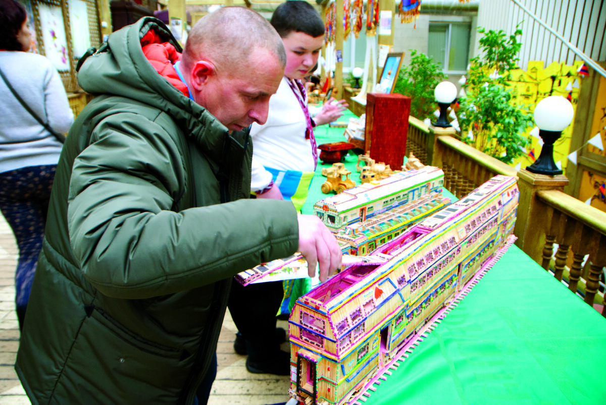 Найбільша модель тепловоза з вагонами. Майстер — Віктор Шуляренко. Длина зчіпки — 2 м 83,5 см, а максимальная высота — 26,5 см. Модель — Локомотив — тепловоз односекційний чотирьох вісний серії ТЕ 136-80-0001 “Древлянин”.