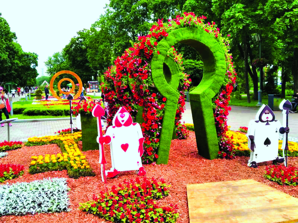 Комунальне підприємство з утримання зелених насаджень Дніпровського району м. Києва подарувало нам вельми естетичний рекорд — найбільшу площу квіткової композиції казкової тематики, темою якої став твір Льюїса Керрола «Аліса в Країні Див». Чудова оаза посеред мільйонного мегаполіса, чарівна казка, що розгорнулась у парку «Перемога», налічує понад 50 тисяч квітів, які представлені п’ятьма локаціями, 3D-квітниками, фотозонами та артоб’єктами. Над створенням квіткових інсталяцій більше 2 місяців працювали 40 талановитих фахівців. Завдяки директору комунального підприємства з утримання зелених насаджень Євгену Ковшуну кожен бажаючий зміг повернутися в дитинство, зробити фото та увічнити швидкоплинність квіткового дива.