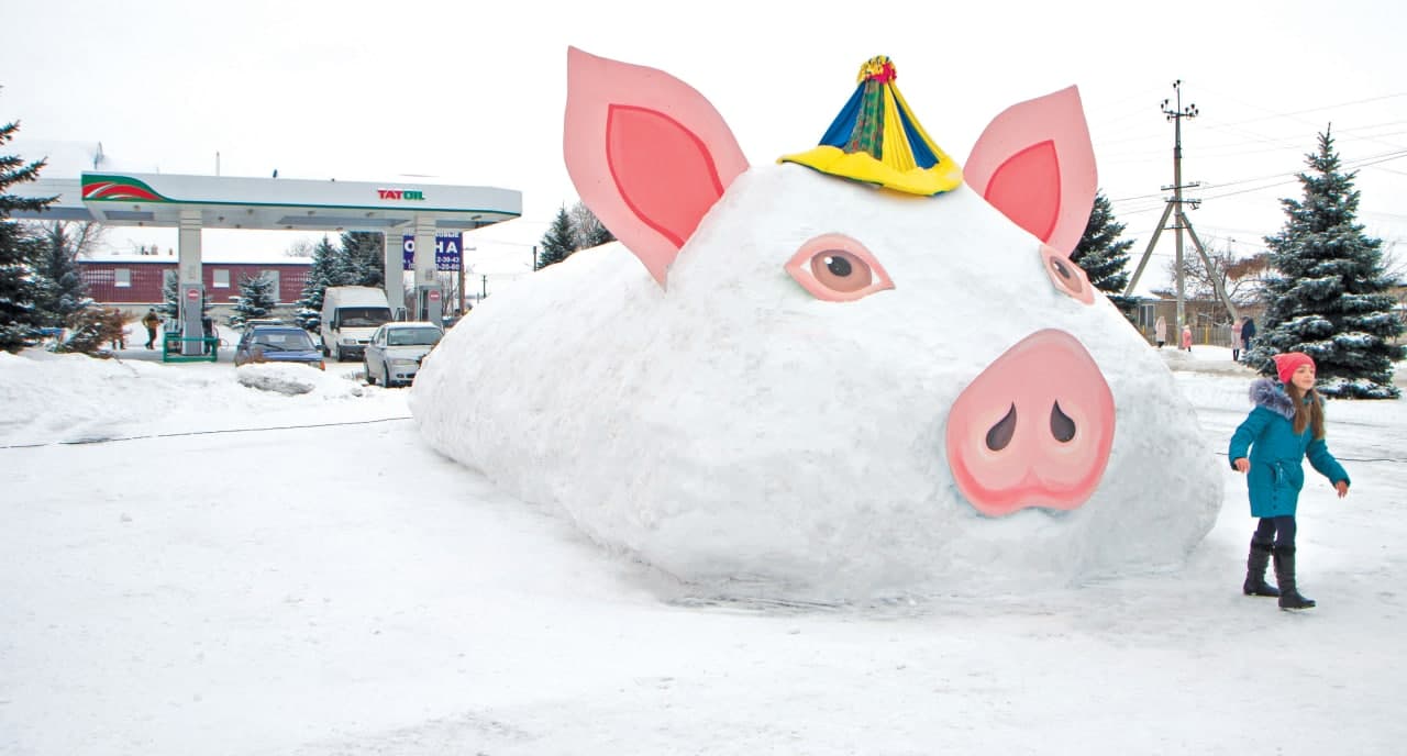 Несподівано, але факт. У місті Подільську, що на Одещині, за 12 днів вигодували велетенську свиню! Її висота становила 3,4 метра, а довжина — 16,2 метра. Єдине уточнення — свинка снігова, а місцева молодь «годувала» її винятково свіжим снігом. Свиня-символ нового року за китайським календарем стала справжньою героїнею народних гулянь і найпопулярнішою фотомоделлю свята.