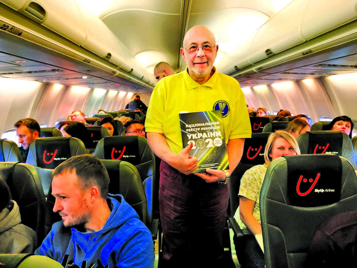 Іноді здається, що довгі перельоти вигадані для того, щоб дочитати якусь товсту книжку. Чи почати нову. Принаймні борт літака — найкраще місце для неспішного та вдумливого читання. А Марк Орловський, заслужений діяч мистецтв України, директор продюсерського центру Григорія Чапкіса, член правління Асоціації діячів естрадного мистецтва України, довів, що на борту літака можна не лише читати, а й презентувати те, що потім буде прочитано. Марк Орловський презентував «Національний Реєстр Рекордів України — 2020» на висоті 36 000 футів і сам потрапив до реєстру рекордів.