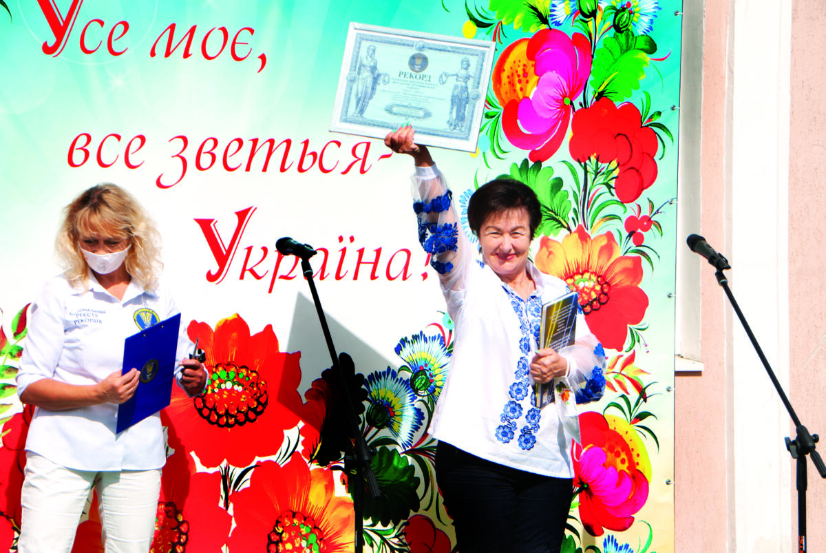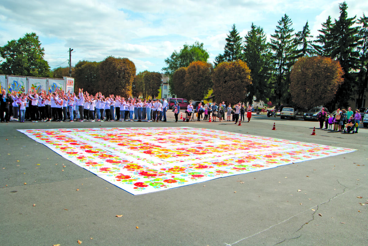 Ви впізнаєте його за фантастичними жар-птицями, небувалих форм жоржинами, «кучерявками» і папороттю на білому тлі. Петриківський розпис внесено до списку нематеріальної культурної спадщини ЮНЕСКО. Тільки уявіть масштаб мальованої фантазії загальною площею 104,13 кв. м! Десять найвідоміших майстрів петриківського розпису створили 210 картинфрагментів мозаїки. Саме їх у суцільне панно склали школярі під час флешмобу. Організатор — Петриківська районна рада Дніпропетровської області, голова — Наталія Коваленко.