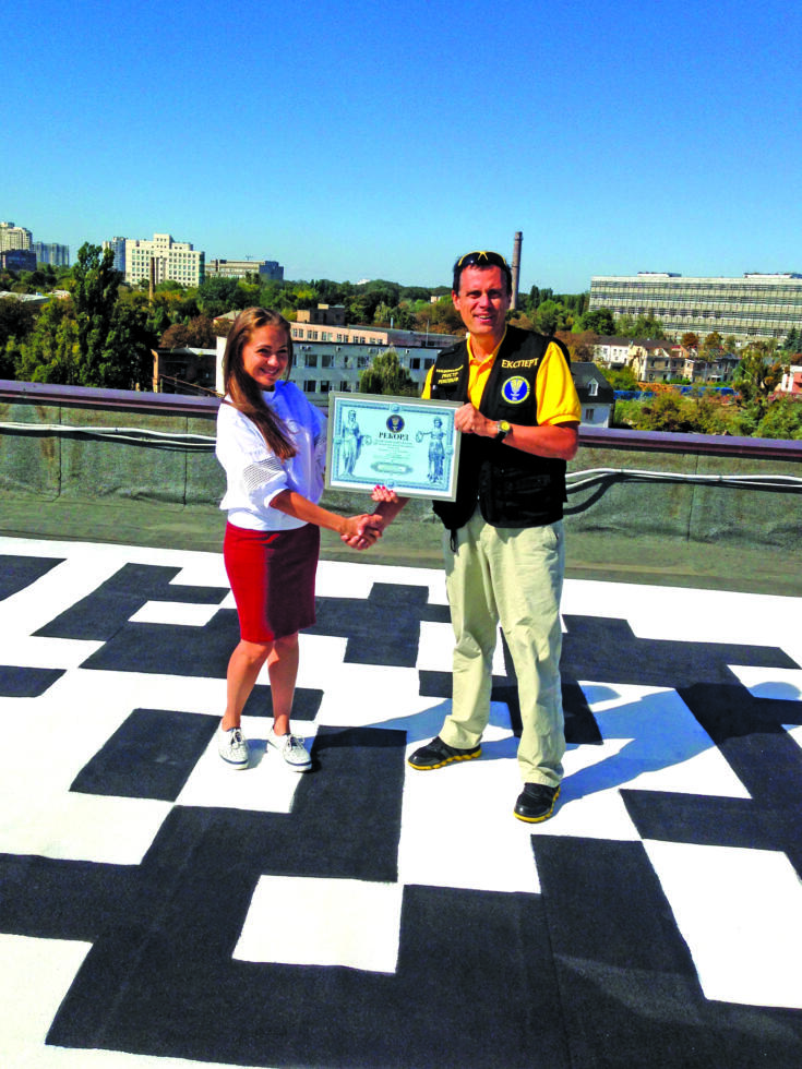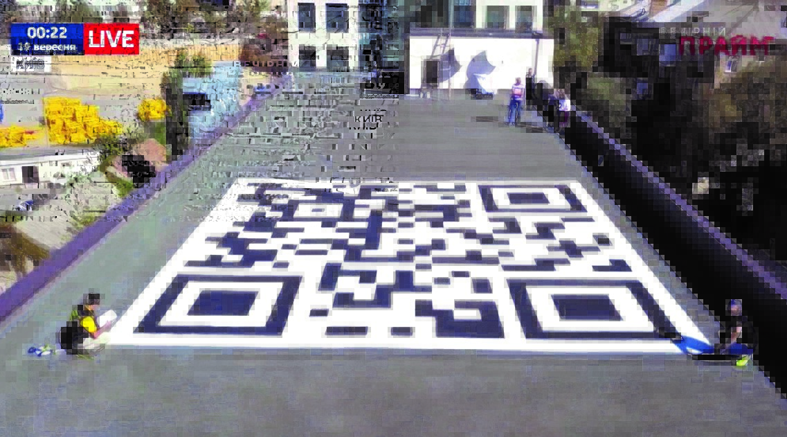 Якщо на борту літака, який пролітає над Києвом, відбувається щось цікаве, цим можна одразу поділитися із широкою глядацькою аудиторією. На дах будівлі телеканалу «112 Україна» нанесли QR-код мобільного додатка «112 Очевидець», який дозволяє свідкам подій швидко повідомляти про те, що трапилося, прямо з місця пригоди. Площа зображення дорівнює площі трикімнатної квартири — 101,613 кв. м.