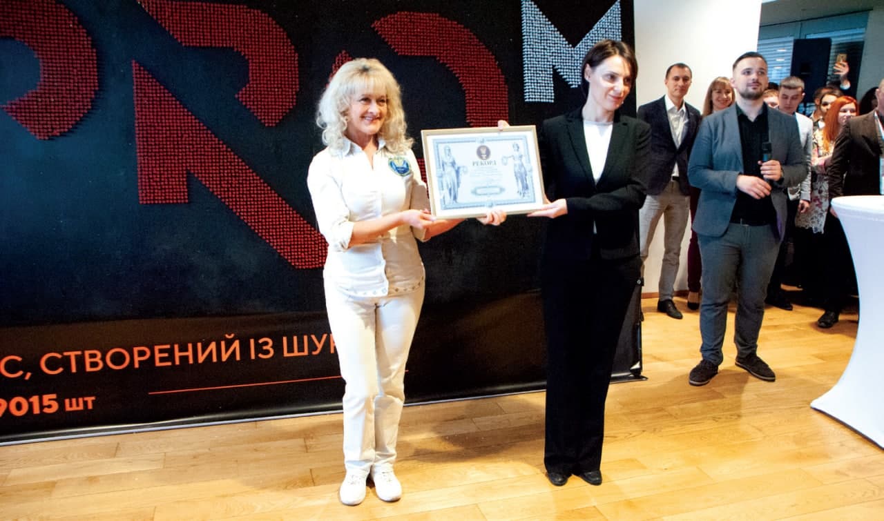 Шуруп, забитий молотком, тримається міцніше, ніж цвях, закручений шуруповертом, але 680 працівників торгової марки електро- та бензоінструменту «Дніпро-М» (компанія КТ Україна; керівник — Тетяна Звягінцева) протягом години загвинчували в дерев’яну площину тільки шурупи, причому виключно шуруповертами власного виробництва. Вони символічно відтворили логотип свого бренда і цим довели, що інструментом «Дніпро-М» можна створювати масштабні та естетичні речі. Для напису довжиною 6,6 метра й висотою букв 0,9 метра було використано 9690 шурупів.