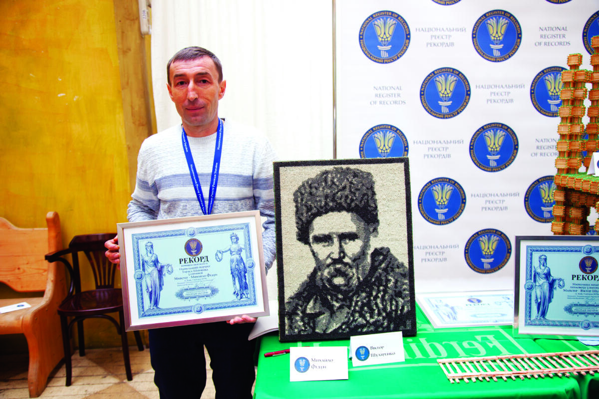 Найбільший портрет Тараса Шевченка із сірників. Майстер — Михайло Федун. Розмір картини становить 42,5 х 55 см.