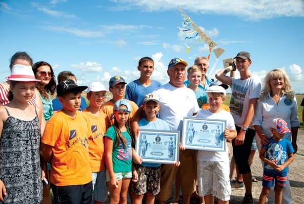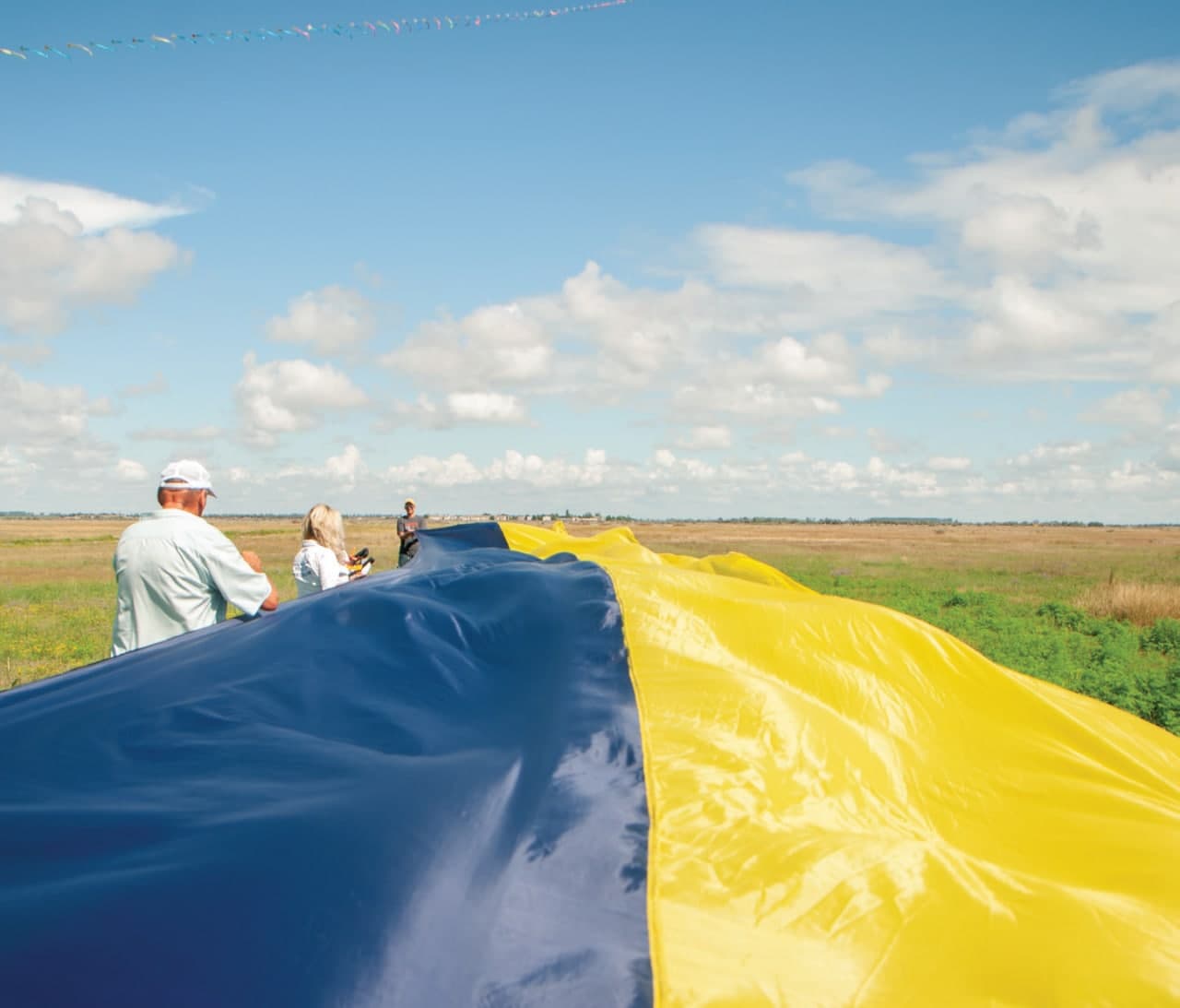 У Скадовську на фестивалі повітряних зміїв «Кольорове небо» діти з аерокосмічного гуртка «Галактика» Скадовського центру дитячої та юнацької творчості (керівник — Володимир Ємельянов) запустили повітряних зміїв, що підняли над містом прапор України площею «типової» двокімнатної квартири — 56 кв. м (20 х 2,8 метра).