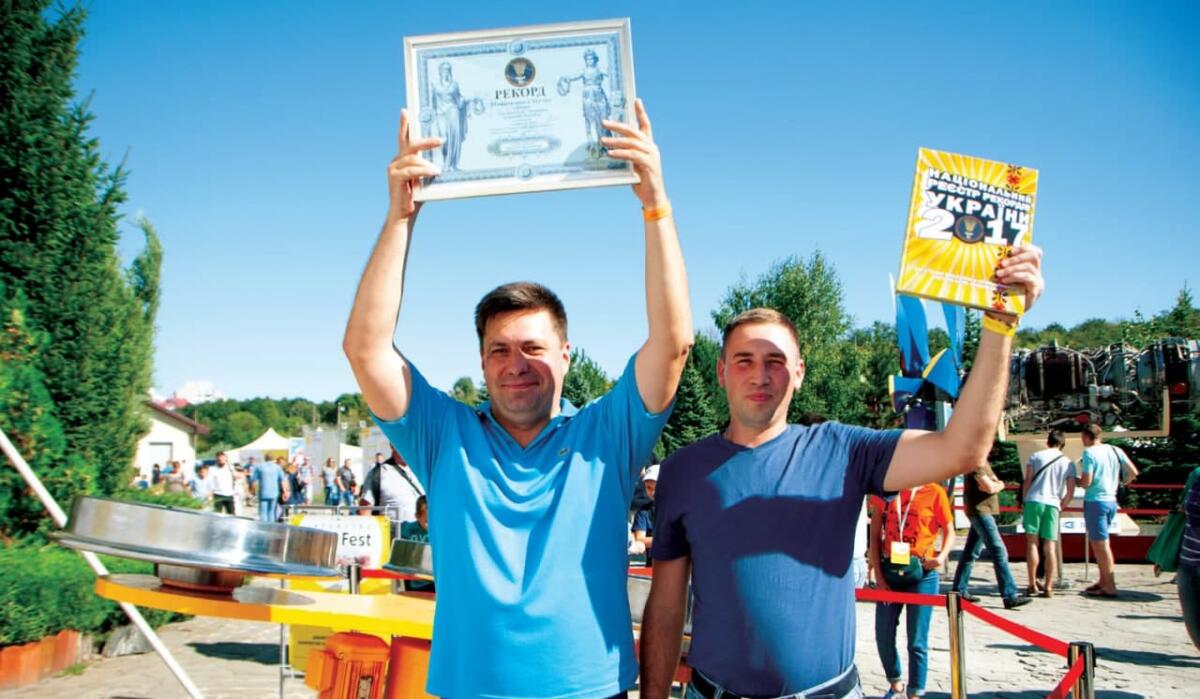 Спінери настільки популярні, що їх явно хтось розкручує. Наприклад, інженери трубопрокатного заводу Interpipe. Це вони на технічному фестивалі Interpipe TechFest у Дніпрі представили суворий чоловічий спінер вагою 3 тонни. Обертові деталі гігантської іграшки діаметром 3 метри і висотою 1 метр виготовили з трьох коліс залізничного потяга. Зафіксували спінер на металевій основі й вбудували мотор- редуктор, який призводить конструкцію в рух. Діаметр обертання — 2,6 метра, кількість обертів — 3,76 за 1 хвилину.