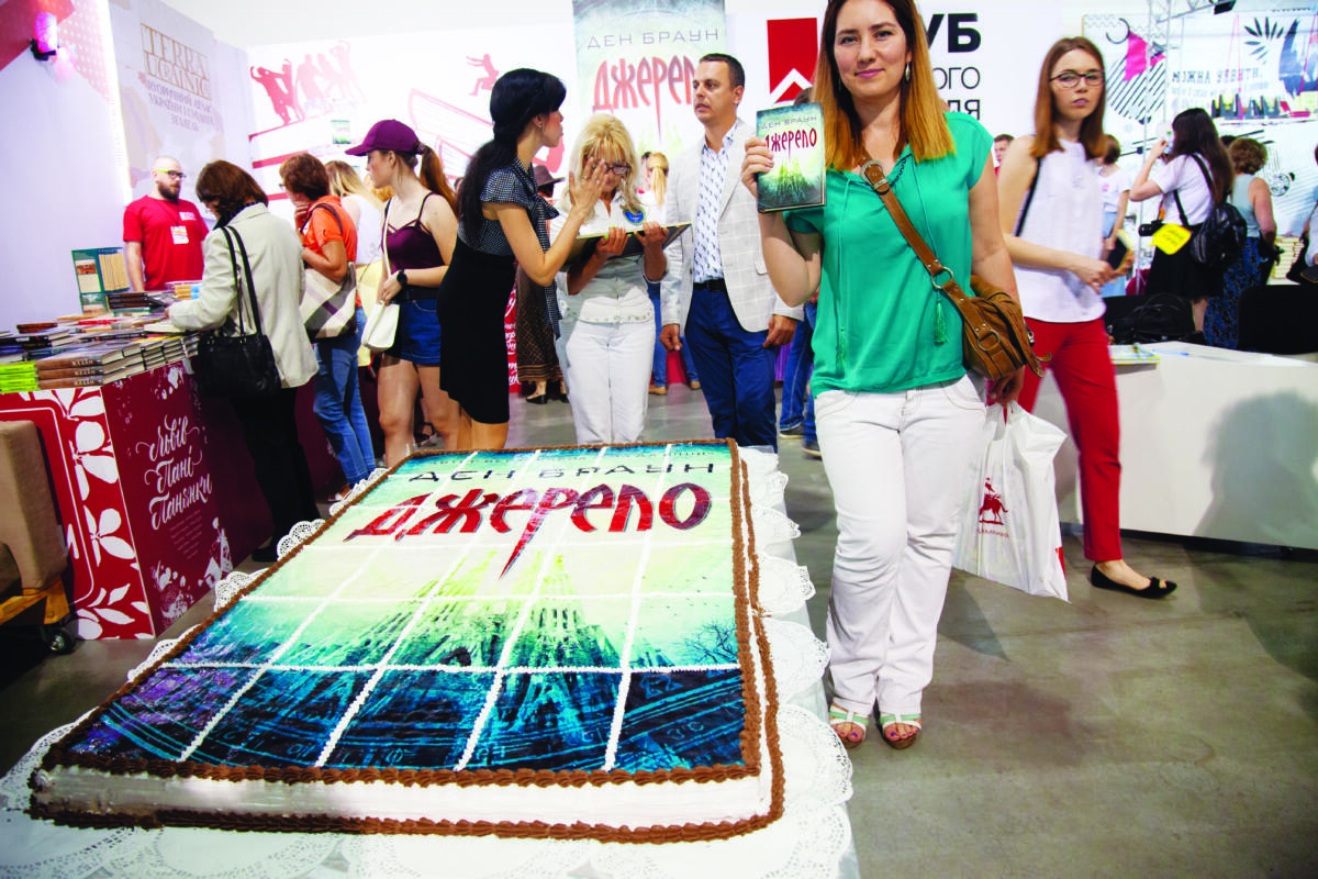 Ден Браун, як завжди, вражає. Не лише карколомним сюжетом, головоломками і заплутаними сюжетами. Адже український переклад бестселера «Джерело» — це ще й найбільший торт у вигляді книги. З площею 1,8 кв. м, шириною 105,5 см, довжиною 171 см і висотою 8,5 см ця книга точно не залишилася без уваги на Книжковому Арсеналі. Під час презентації нового видання книголюби також поласували і 48 кілограмами солодкого твору. Ідея — книжкового клубу «Клуб сімейного дозвілля».