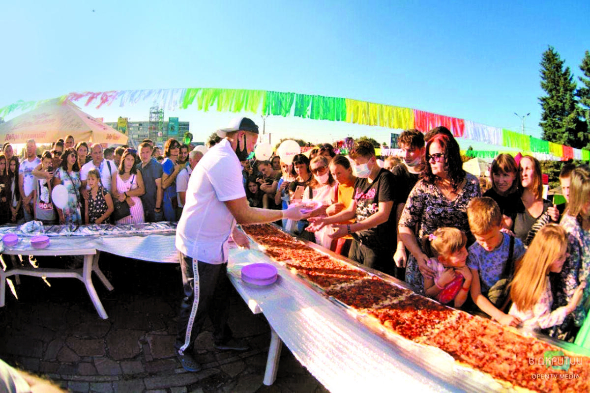 На День міста дніпровці випекли наааааайдовшу піцу країни! 6 кухарів та 4 їх помічники впродовж 5 годин створювали 52-метрову піцу- рекордсменку. Вона навіть отримала власне ім’я — «Козак Мамай». За походженням Козак, звісно, італієць, але має лише традиційні українські інгредієнти. Розібрали «Мамая» на шматочки вмить. Організатор — ГО «Асоціація рестораторів та готельєрів» м. Дніпро, партнери — ТМ «Дніпромлин», ТМ «Криворізькі Дріжджі», м’ясокомбінат «Ювілейний», компанія «Івентус».