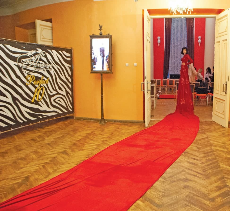 У сукні зі шлейфом що головне? Не наступити на нього. А що ж робити, коли ваша сукня — це і червона доріжка також? Йти красиво. У Запоріжжі на показі дизайнерки Ангеліни Маєвської- Данченко представили сукню-трансформер, шлейф якої водночас служить і червоною доріжкою. Його довжини 61 метр 20 сантиметрів достатньо для подвійної функції — червоною доріжкою ходили інші моделі та виступали артисти.