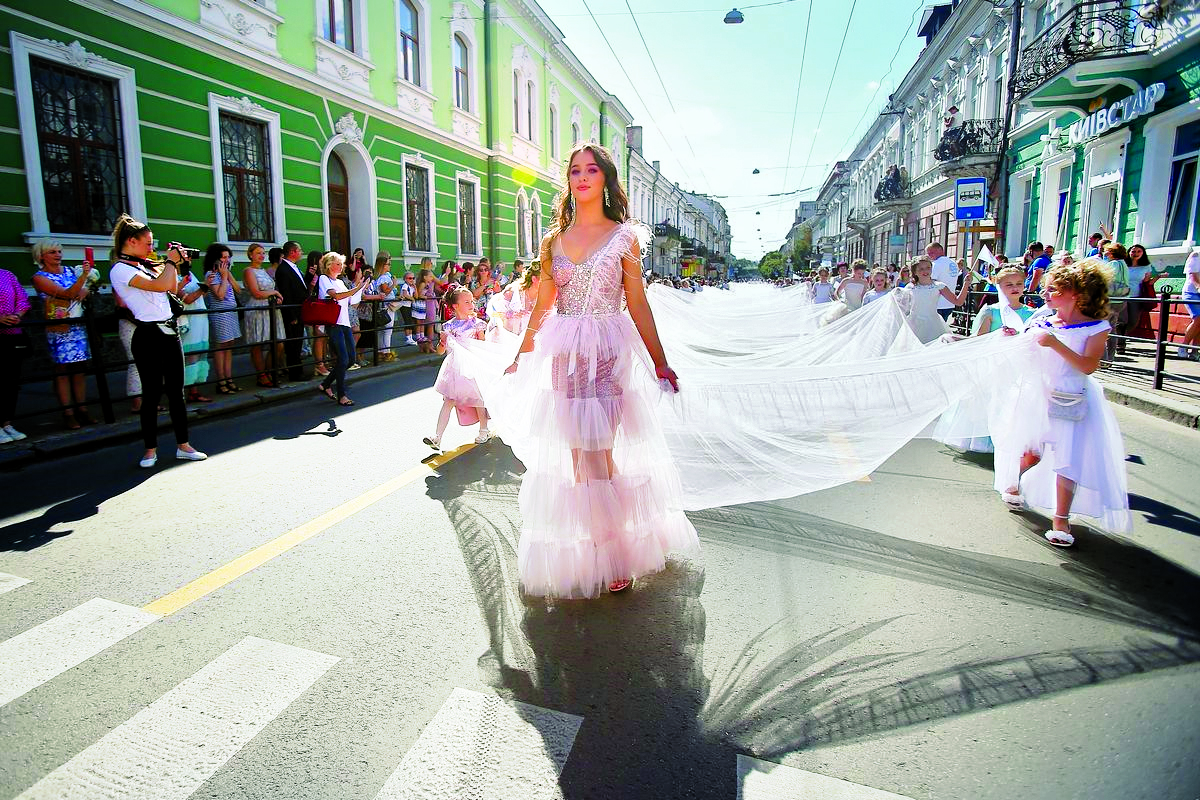 Мабуть, усі дівчата мріють мати особливу випускну сукню. А таку, щоб ще й зі шлейфом у 102 метри 87 сантиметрів? ТМ «НАТАЛІ-МОДА» і дизайнерка весільного, вечірнього та дитячого святкового одягу Наталі Стефанчук зробили подарунок для однієї із мрійниць, а традиційну ходу випускників у Тернополі перетворили на модний подіум! Дівчина, якій пощастило продемонструвати дизайнерську сукню-трансформер з найдовшим шлейфом, — випускниця Марія Борисяк.