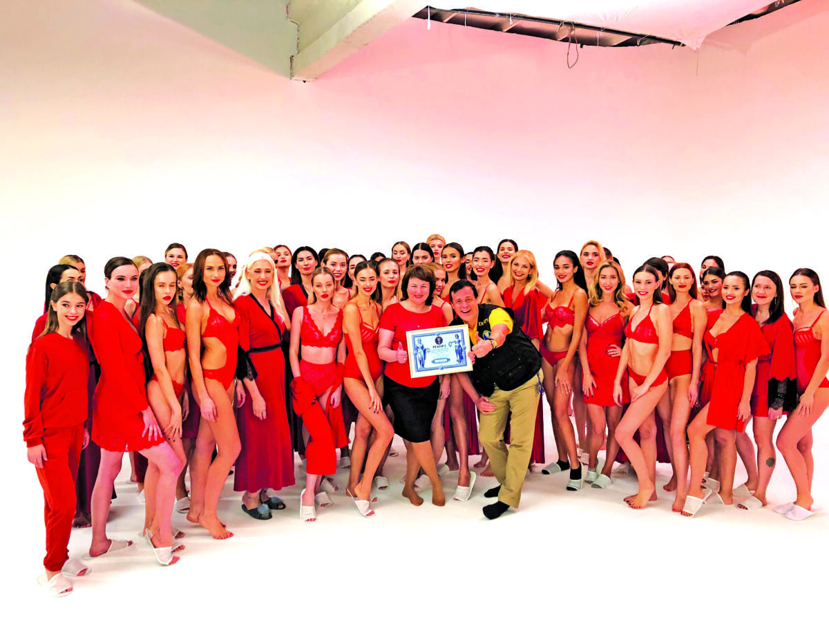 Фотограф Михайло Федорак зловив у свій об’єктив казкової краси рекорд — 54 прекрасних дівчини в розкішній червоній білизні відомої торговельної марки «Anabel Arto» зібралися на наймасштабнішу фотосесію. Таким чином, організатор рекорду «Anabel Arto» запровадили магічну традицію зустрічати Новий рік у червоному, адже цей колір приносить удачу та благополуччя.