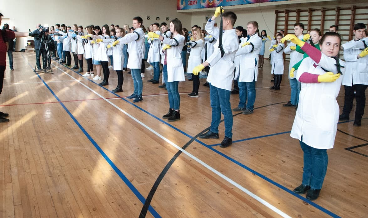 У симуляційному навчанні із зупинки кровотечі в Запорізькому державному медичному університеті взяли участь 106 студентів та учнів 99-го ліцею Запоріжжя. Працювали в супроводі «Козацького маршу» під команди сертифікованих інструкторів, студентів ЗДМУ Владислава Скоби і Олександра Копотія, які мають добрий практичний вишкіл, адже обоє брали участь в антитерористичних та операціях об’єднаних сил в зоні бойових дій на Сході України, де надавали допомогу пораненим бійцям та навчали цього інших як волонтери. Організувала навчання Студентська рада ЗДМУ (голова — Максим Усатенко).