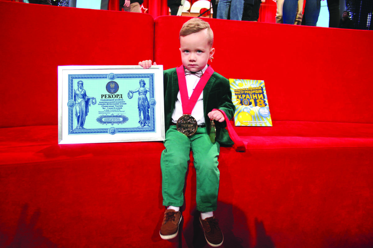 Розрізняти картини Мане і полотна Моне, Ейфелеву вежу від Пізанської, а також безпомилково впізнавати 50 футбольних клубів! Про такі вміння хлопчика у 3 роки і 8 місяців ви б точно не здогадалися. Але маленький киянин Олександр Ткачук особисто все підтвердив, ставши абсолютним рекордсменом. За 4 хвилини 50 секунд він точно назвав 50 емблем різних футбольних клубів світу, жодного разу не переплутавши їх. До самого футболу Сашко байдужий, натомість захоплюється рішенням логічних задач.