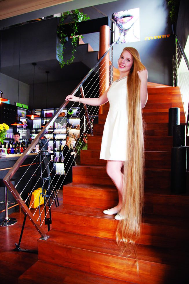 Киянці Олені Корзенюк (15 років 11 місяців) терпеливості не позичати. За все життя жодного разу не піддалася спокусі постригтися заради модної зачіски. П’ятеро перукарів-майстрів протягом години розчісували, вирівнювали та обробляли спеціальними засобами її волосся, щоб те перестало бути хвилястим — і все заради того, аби заміряти його довжину — 235 сантиметрів. Організатор рекорду — топ-стиліст Юрій Царьов.