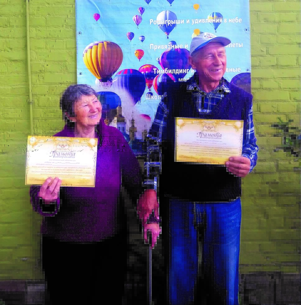 З виставкового центру «КиївЕкспоПлаза» піднялася в небо повітряна куля з подружжям Галини та Юрія Захаржевських. Може, політ і пройшов би непоміченим, якби не вік повітроплавців — Юрію виповнилося 79 років, а Галині — 81, що за сукупним віком становить 160 років 5 місяців. У шлюбі вони перебувають 56 років і давно мріяли разом політати на аеростаті. Допомогла їм втілити мрію в життя громадська організація «Українське повітроплавне товариство», керівник — Сергій Скалько.