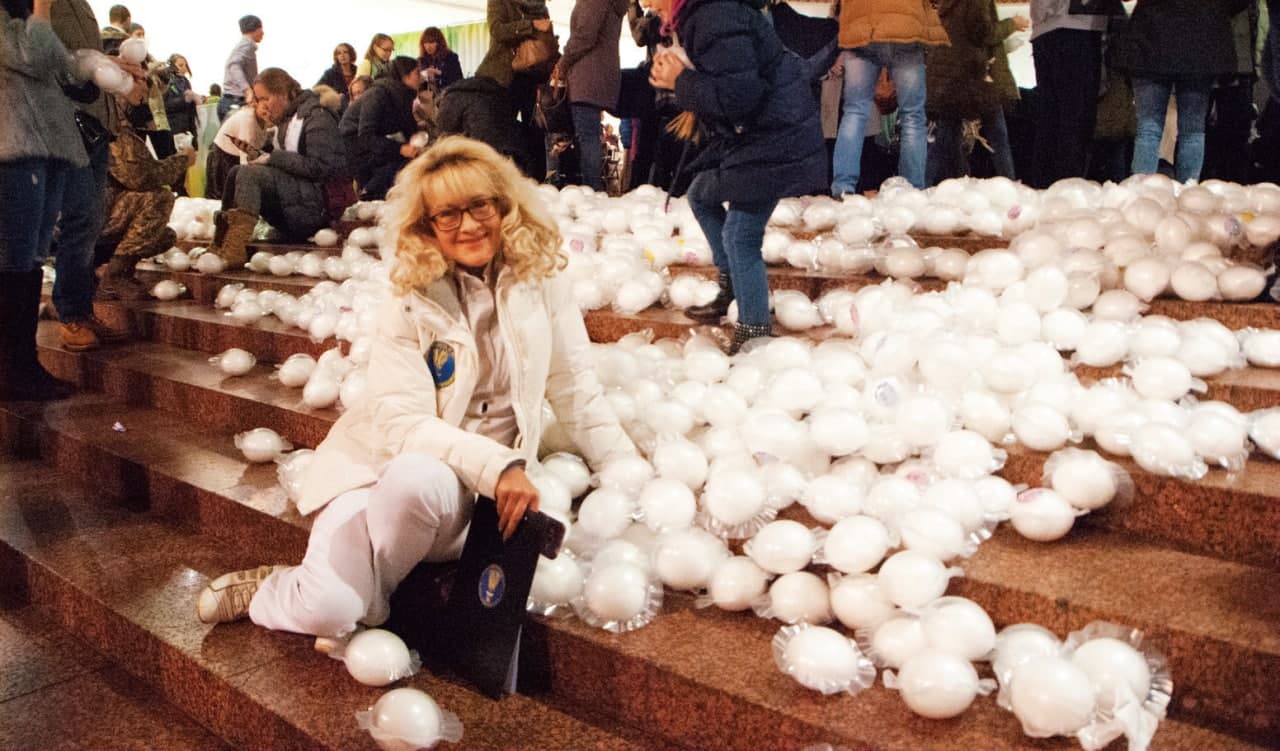 Діти обожнюють такі рекорди — веселі, солодкі і розважитись на котрих можна всією компанією, та ще і дорослих запросити. Цього разу розважались із величезною 300-кілограмовою хмариною, створеною з кульок цукрової вати. Хмарина спустилась на відвідувачів Фестивалю-виставки здорового способу життя Yoga expo та розтанула серед них гостинцем. Організатор — Царичанська кондитерська фабрика.