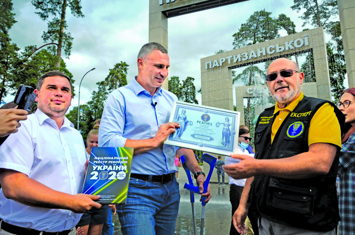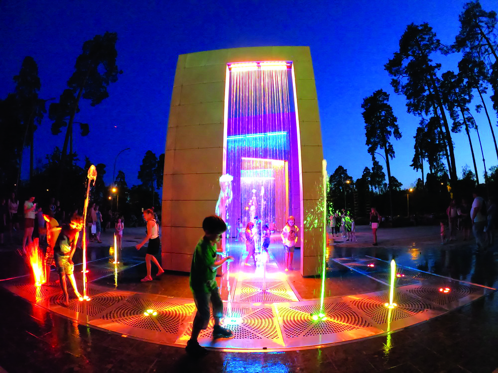 Естетичну насолоду та дитячий захват викликав новий фонтан у столичному Парку партизанської слави. Фантастично красивий водограй складається з п’яти арок заввишки від 6 до 7,7 метра, кожна з яких утворює грайливий водоспад. Крім того, фонтан сконструйовано таким чином, що можна легко прогулятися між струменями води, що піднімаються знизу, та охолодитися в спеку. У вечірній час він підсвічується різними кольорами за допомогою LED-світильників. Замовник будівництва фонтана — КО «Київзеленбуд».