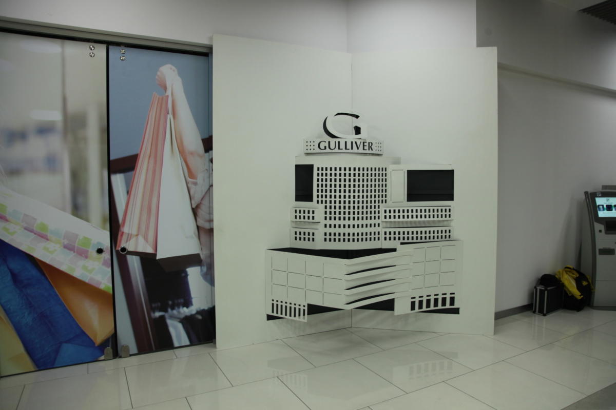 3D-вітальну листівку такого розміру не прийняла б для транспортування жодна пошта: 3 на 3 метри це майже в 580 разів більше, ніж міжнародний стандартний розмір листівки, визначений Всесвітнім поштовим союзом (148х105 мм). Тож у свою першу річницю столичний ТРЦ «GULLIVER» привітав нею сам себе. Вміст листівки у розгорнутому вигляді – макет хмарочосу бізнескласу «GULLIVER», який є другим в Україні за висотою будинком (148,1 м) і складається з 35-поверхового бізнес-центру та 16-поверхового розважального комплексу.