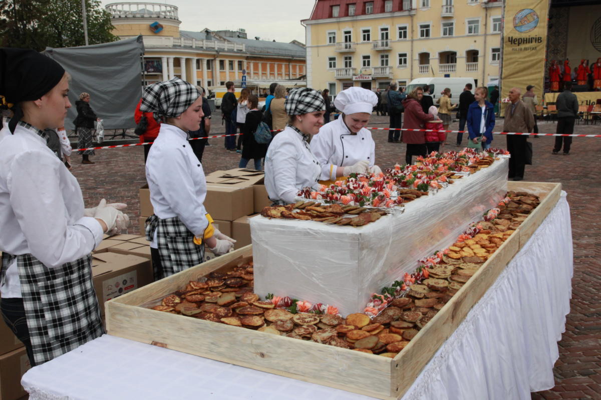 В день відкриття туристичного сезону в Чернігові насмажили найбільшу кількість смачних картопляних дерунів – 5041. За словами ведучих «Дерун-фесту», деруни смажились в 10 кращіх ресторанах Чернігова. Організатор рекорду – Чернігівська міська рада.