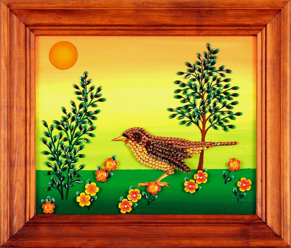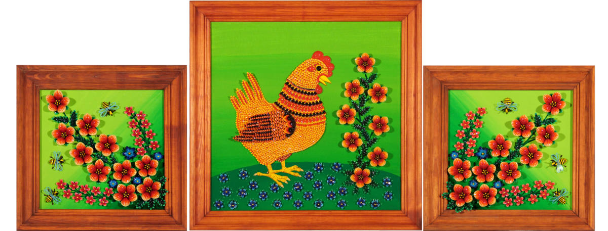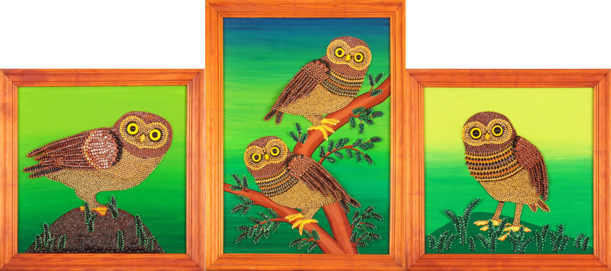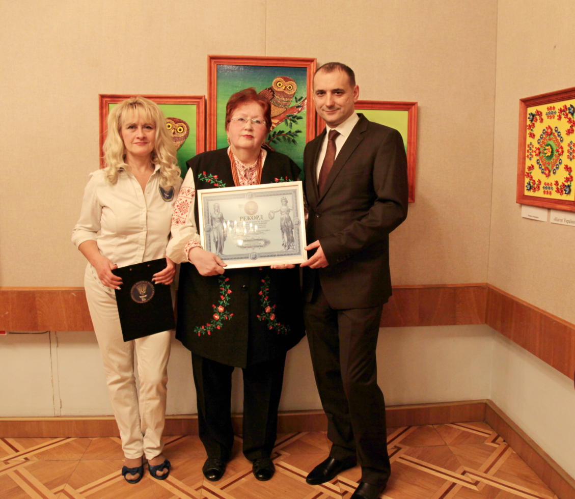 Заслужений майстер народної творчості України Ольга Літус з Полтави має патент на свій винахід – створення об’ємних флорамозаїчних панно.Її матеріал – насіння плодів та ягід. Але гінкго-білоба – поза конкуренцією: рівне, гладке і майже однакове. Майстриня розробила техніку, в якій насінинки клеяться до основи під кутом 35, 45 и 90 градусів, створюючи 3D зображення, розписуються фарбами, що надає картинам виразності. До НРР внесено 16 флорамозаїчних панно Ольги Літус, в яких «засіяно» рекордну кількість насінин гінкго-білоба – 320 штук! Партнер рекорду – Валерій Прядко.