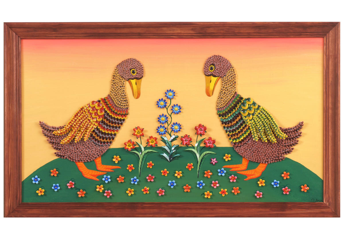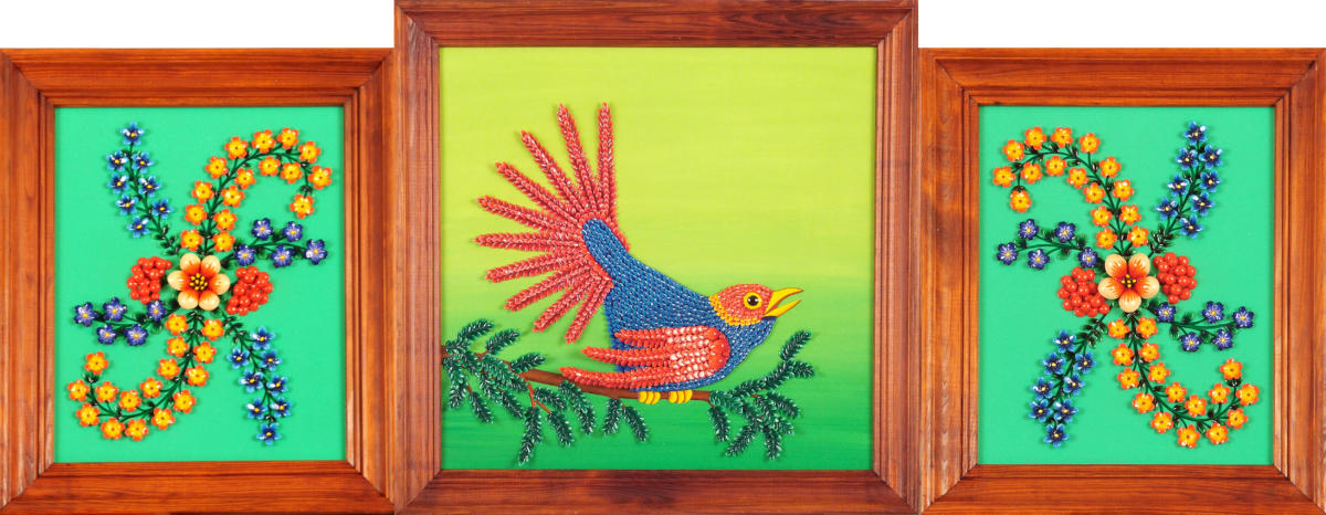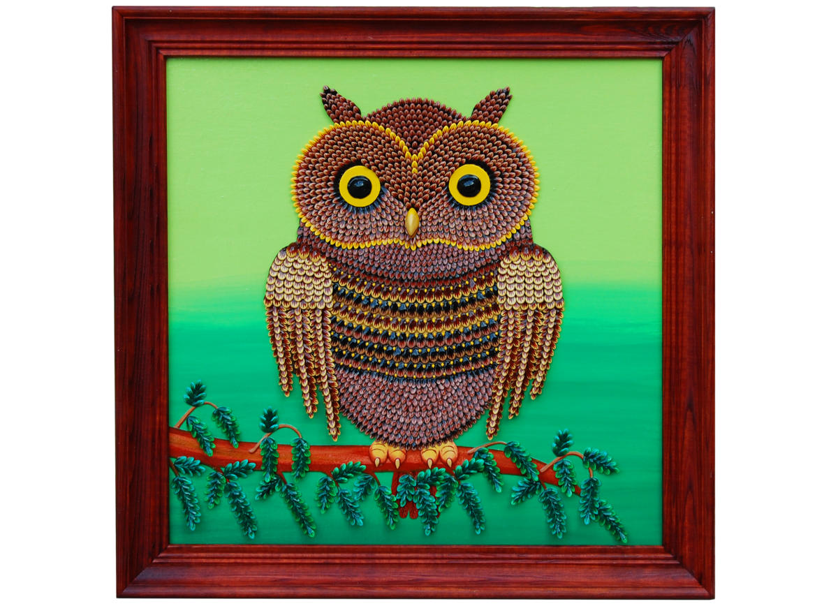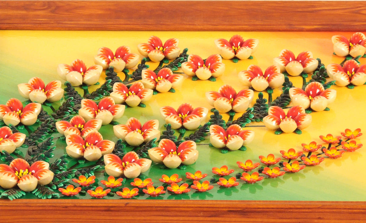 Заслужений майстер народної творчості України Ольга Літус з Полтави має патент на свій винахід – створення об’ємних флорамозаїчних панно.Її матеріал – насіння плодів та ягід. Але гінкго-білоба – поза конкуренцією: рівне, гладке і майже однакове. Майстриня розробила техніку, в якій насінинки клеяться до основи під кутом 35, 45 и 90 градусів, створюючи 3D зображення, розписуються фарбами, що надає картинам виразності. До НРР внесено 16 флорамозаїчних панно Ольги Літус, в яких «засіяно» рекордну кількість насінин гінкго-білоба – 320 штук! Партнер рекорду – Валерій Прядко.