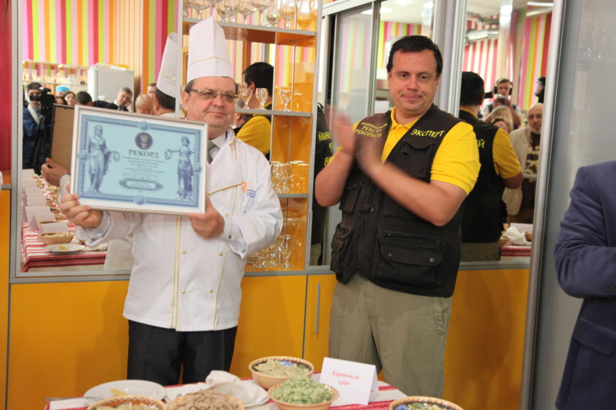 Вареники, що самі лізуть до рота гостям – давній символ української гостинності, тож не дивно, що для конкурсу їх готували студенти факультету готельно-ресторанного і туристичного бізнесу (декан Ігор Комарницький). Квасоля, гриби, курага, печінка, морква, чорнослив, кілька видів сиру – чим тільки не начиняли вони свої вироби, а ще були й різні комбінації з традиційними «загальноукраїнськими» начинками – картоплею та капустою. Експерти НРР, зрозуміло, скуштували усі ці начинки без винятку (треба ж було переконатися, що вони різні!) і зафіксували рекорд для однієї локації – 25 різних рецептів. Після того вареники, а також начинки та тісто окремо стали здобиччю суддів конкурсу – от вже кому пощастило…