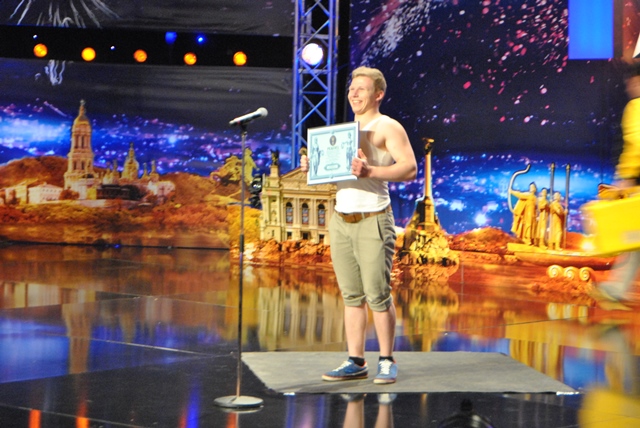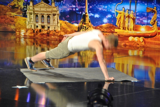 Віджиматися від підлоги обома руками не дуже зручно – ані тобі обличчя від поту обтерти, ані комарів відігнати. Можливо, саме тому дехто з атлетів віддає перевагу віджиманню на одній руці. А якщо серйозно, то ця вправа значно важча і технологічно складніша за звичайне віджимання. От і Євгенові Пилипенку з міста Корюківки, що на Чернігівщині, встановити рекорд з першого разу не вдалося – зісковзнула рука. Проте Євген показав себе морально стійким бійцем і, не падаючи духом, з другої спроби на очах численних глядачів телешоу «Україна має талант» таки домігся жаданої перемоги – 35 віджимань за 30 секунд.