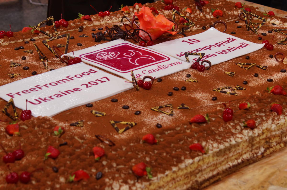 «Бути чи не бути», – таке питання хвилювало Гамлета, а багатьох жінок сьогодні хвилює – «Їсти чи не їсти?». Компанія «Ла-Кондитерра» заявила: «Їсти!» – і приготувала найбільший безглютеновий торт в Україні, розмір якого 92 х 197 см. Рекордний торт був приготований з безглютенових і безлактозних сумішей для випічки та крему, які можна вживати дорослим і дітям, які страждають на целіакію, проблеми з травленням, лактозною недостатністю і тим, хто веде здоровий спосіб життя. Безпечно для здоров’я та фігури! Якість торту підтверджена лабораторними аналізами. Рекорд встановлено в рамках масштабної виставки здорового і спеціалізованого харчування «Free From Food Ukraine 2017» для людей, які не переносять глютен та інші харчові інгредієнти. Організатор – компанія Red Lynx Production.