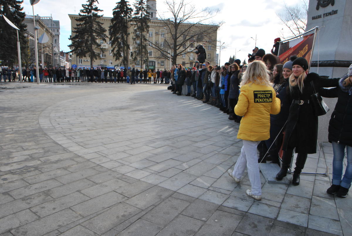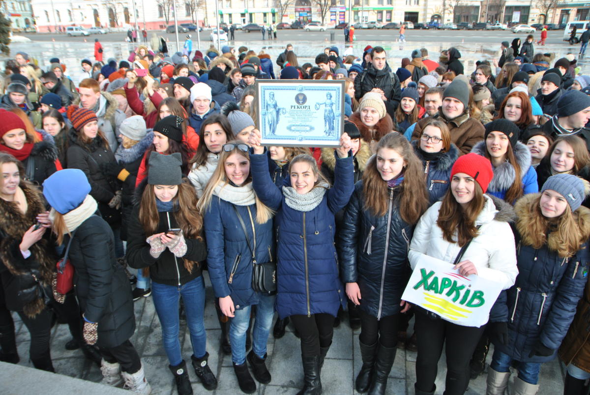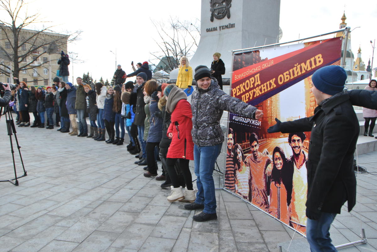 Ми, українці, любимо обійматися – факт. Бо енергії в нас через край, і ми вміємо нею ділитися один з одним навіть на відстані. Оця невичерпна енергія простих людей і спонукала експертів НРР роз’їхатися на різні боки у три різні українські міста, щоб зафіксувати один і той же рекорд. В рамках акції «Шлях дружби» люди приходили на головну площу свого міста у чітко визначений час та обіймалися зі своїми друзями. Таким чином у Харкові, Львові та Ужгороді одночасно обійнялися за плечі 1007 людей. Найбільше «обіймашок» було зафіксовано у Львові – 433, 403 – у Харкові та 170 – в Ужгороді.