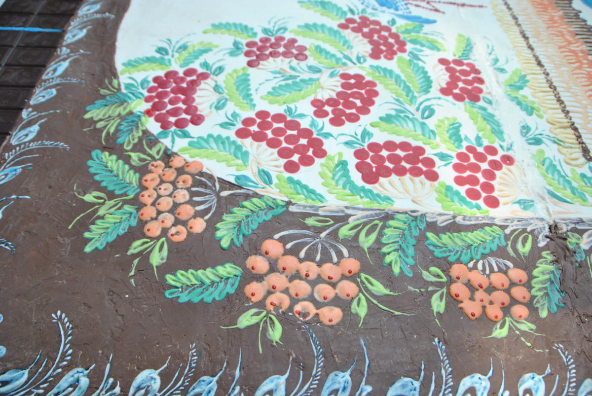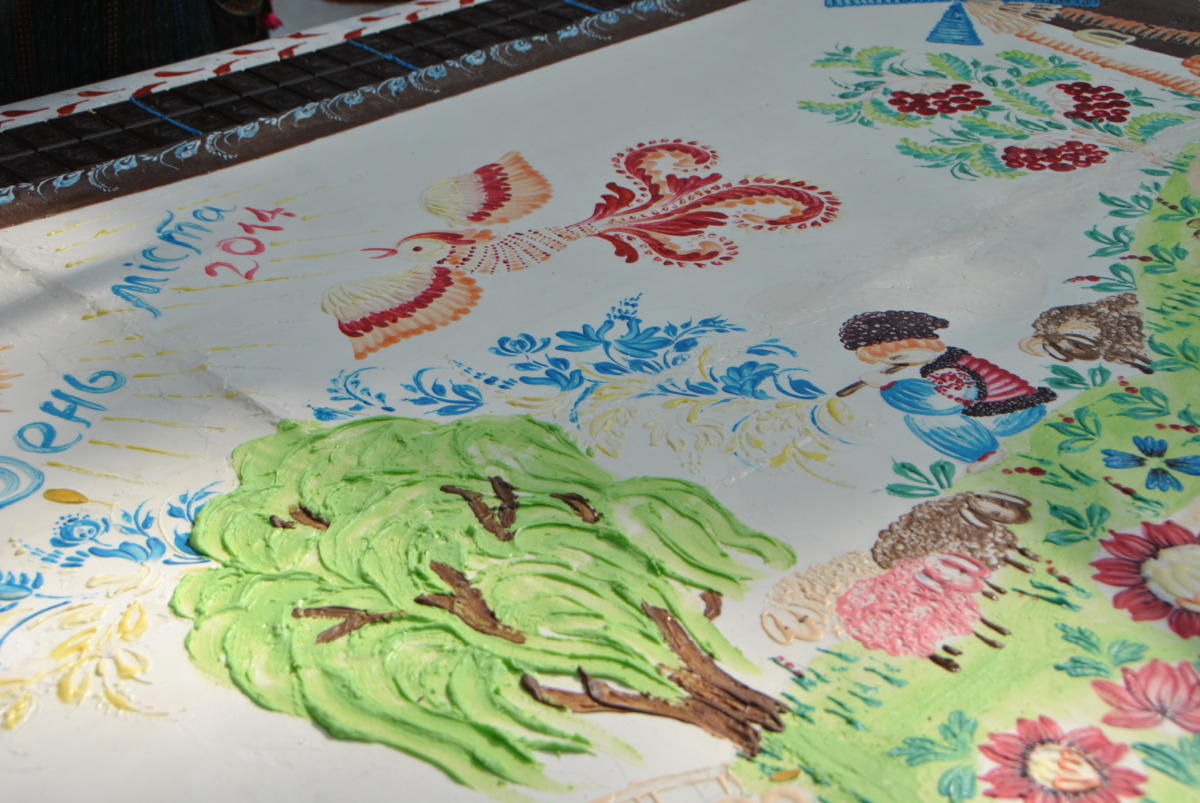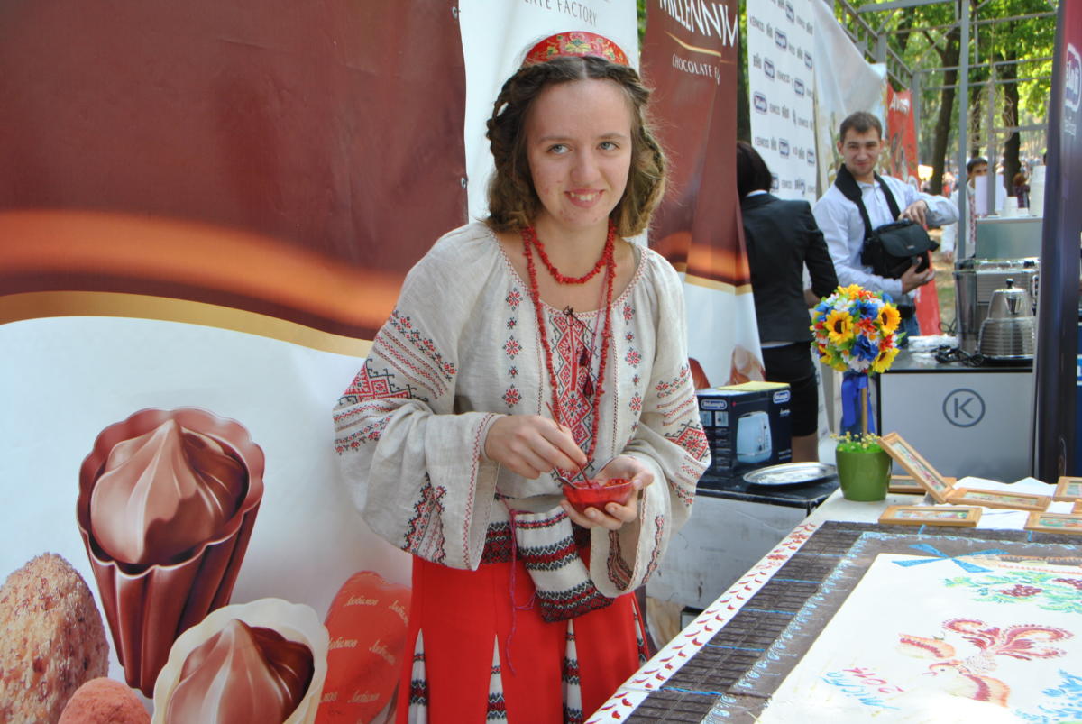 У своїй композиції авторки втілили свої мрії про мирну і єдину Україну. На гігантській шоколадці площею 2,72 кв.м (завдовжки 2,47 м, завширшки 1,1 м) в техніці петриківського розпису був зображений пастушок, що грає на сопілці, українська хата з вербою та калиною, млин, розмаїття квітів та жар-птиця. Кондитерський виріб прикрасили написом: «Дніпро – це серце України».