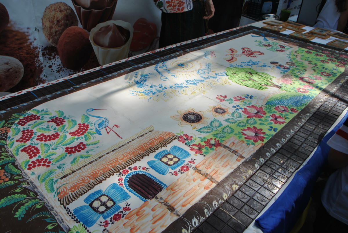За словами організаторів – Асоціації рестораторів та отельєрів Дніпропетровська (керівник Олена Булах), – на виготовлення рекорду знадобилося понад 40 кг білого, чорного і молочного шоколаду. Як розповіли майстрині петриківського розпису, мама та донька Кириленки, на підготовку шоколадки до розпису в них пішло понад тиждень – плитки шоколаду різних сортів викладали на пласку поверхню і склеювали між собою шоколадною помадкою. Для розпису використали 12 барв. Деякі елементи намалювали заздалегідь, деякі – безпосередньо на святкуванні Дня міста просто неба, постійно підігріваючи шоколадні «фарби», аби не застигали.